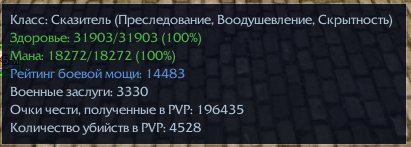 Топ 1 киллкаунт на сервере, на любом пвп ивенте в топ 3 по киллам, персонаж идеально собран под реалии фреша, опытным игроком