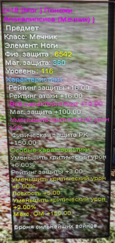 Сервер: Karos Reborn (karos.to) — PandoraКраткое описание: 116 поножи меча