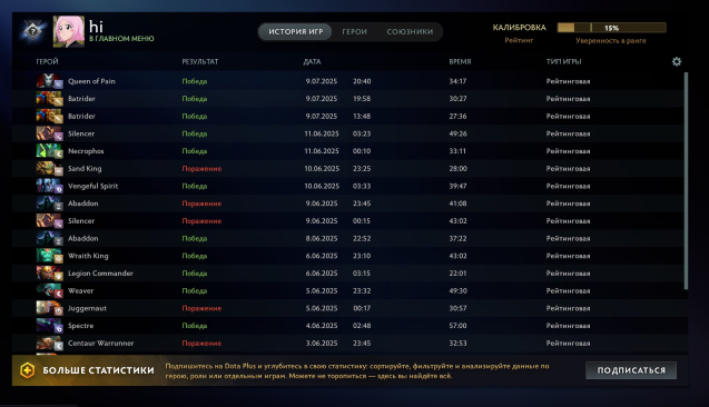 🏅 Рейтинг: 3000 MMR (15% уверенность) — доступна перекалибровка