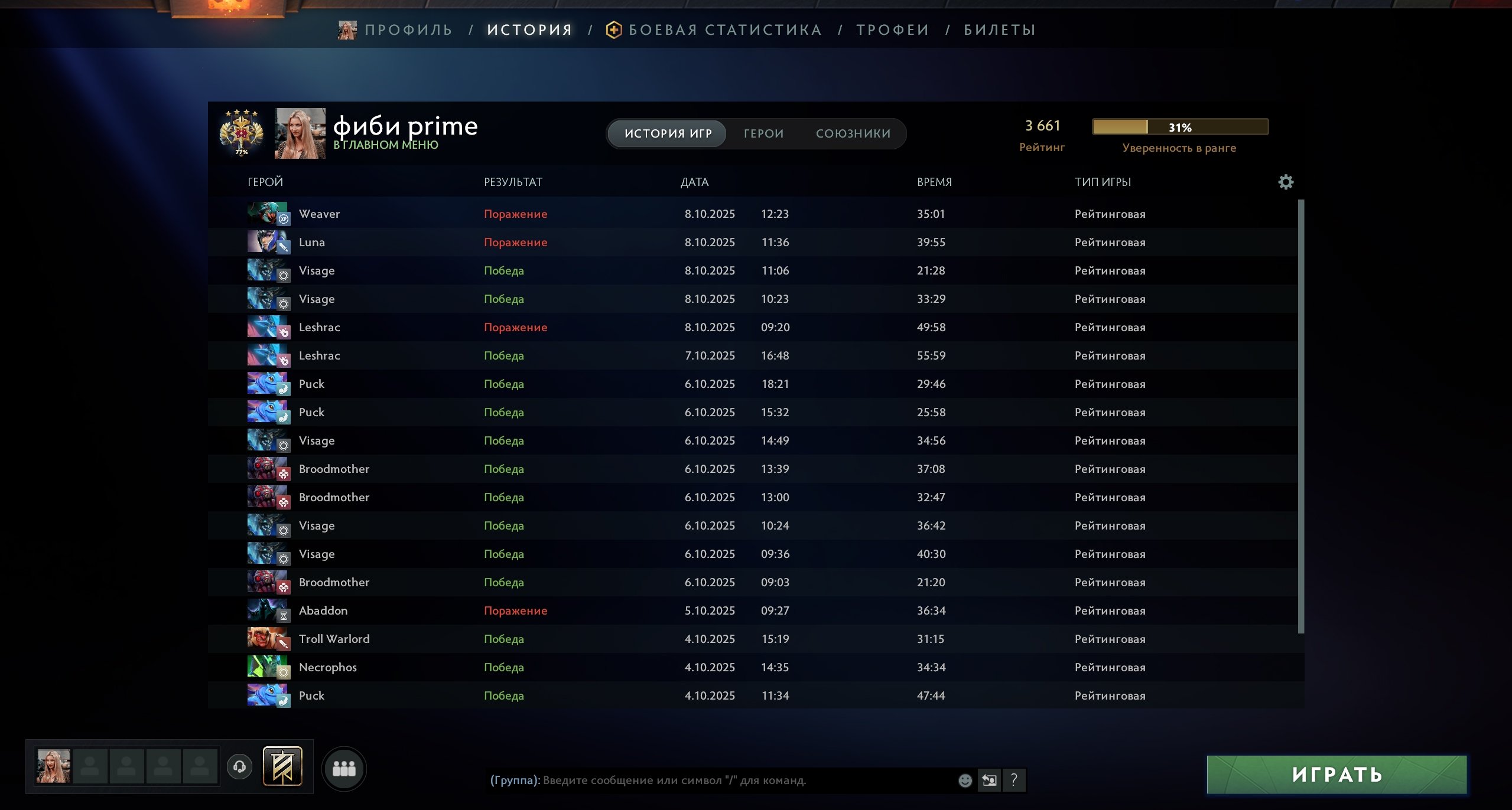 Краткое описание: Мейнпул, Легенда ,3661 ММР, 1300 МАТЧЕЙ👻