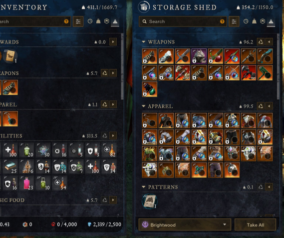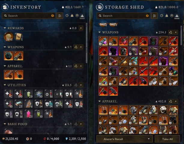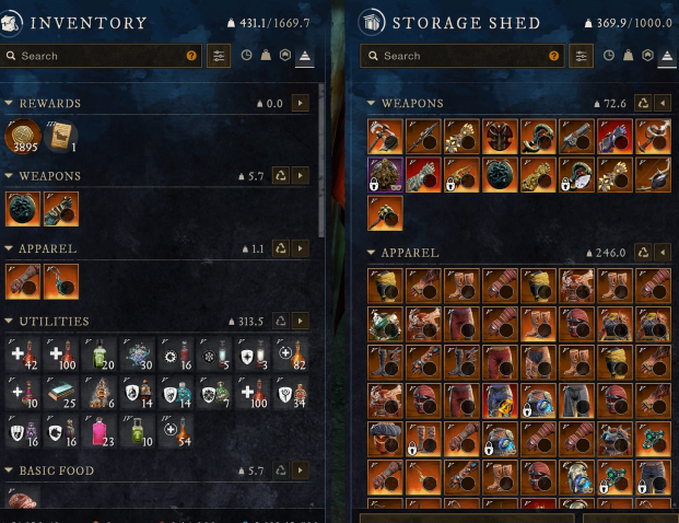 На аккаунте вы найдете легендарные инструменты с отличными перками для сбора ресурсов. Также, приобретены легендарные сумки с улучшенной вместимостью, что позволяет вам не волноваться о перегрузке персонажа.