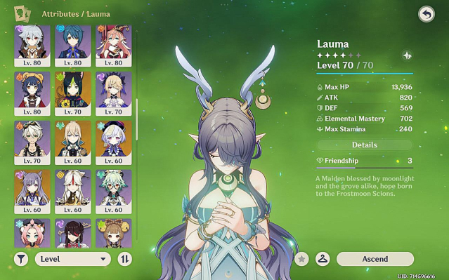 Навия С1, тарталья С1, мона с3, дилюк с2, цици с1. По инвентарю 3 феи и 5 питомцев летающих рядом. Всего 786 достижений.