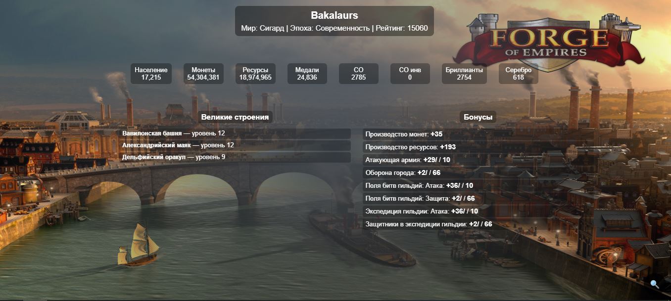 ДАННЫЕ ИДУТ ОТ АККАУНТА FORGE OF EMPIRES
