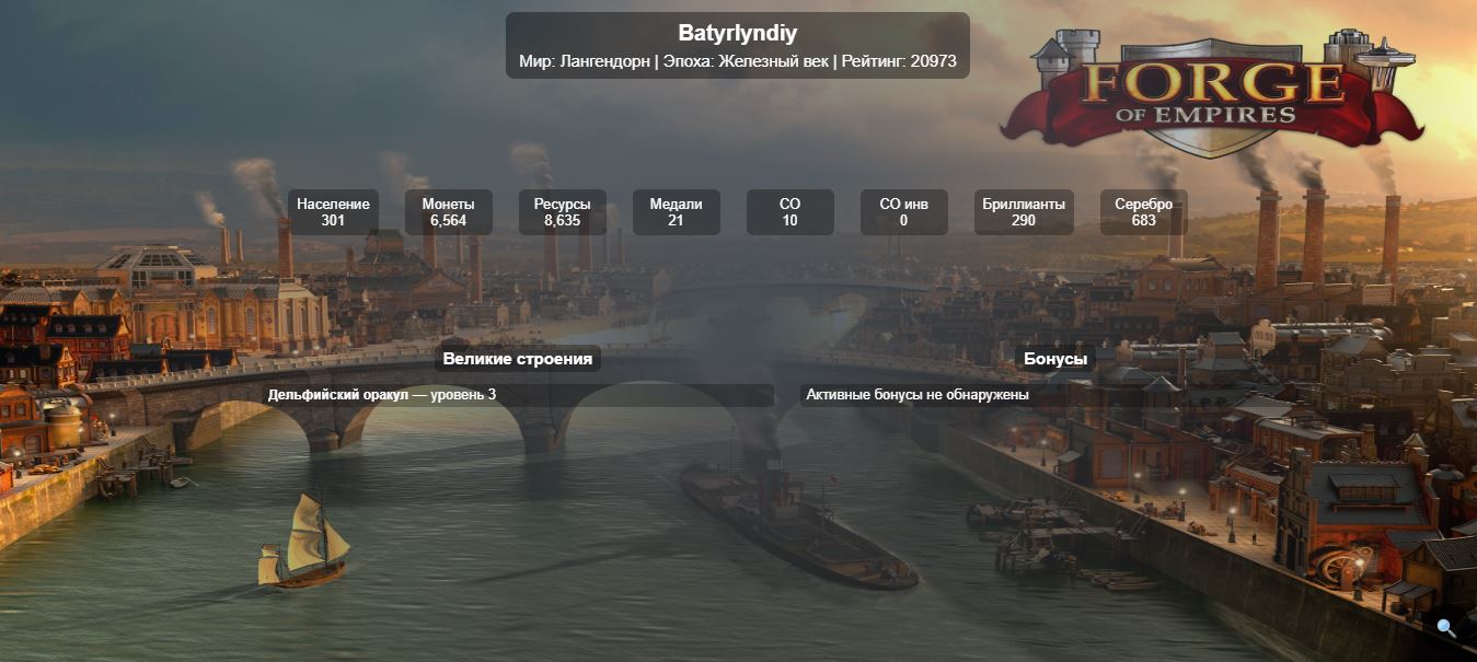 ДАННЫЕ ИДУТ ОТ АККАУНТА FORGE OF EMPIRES