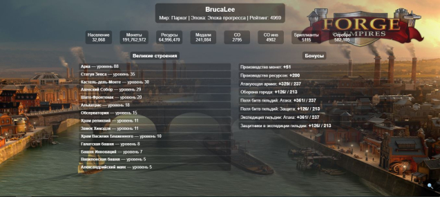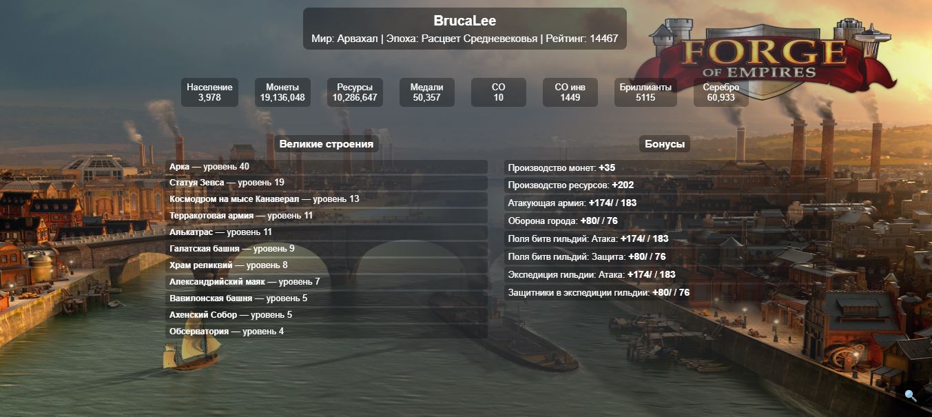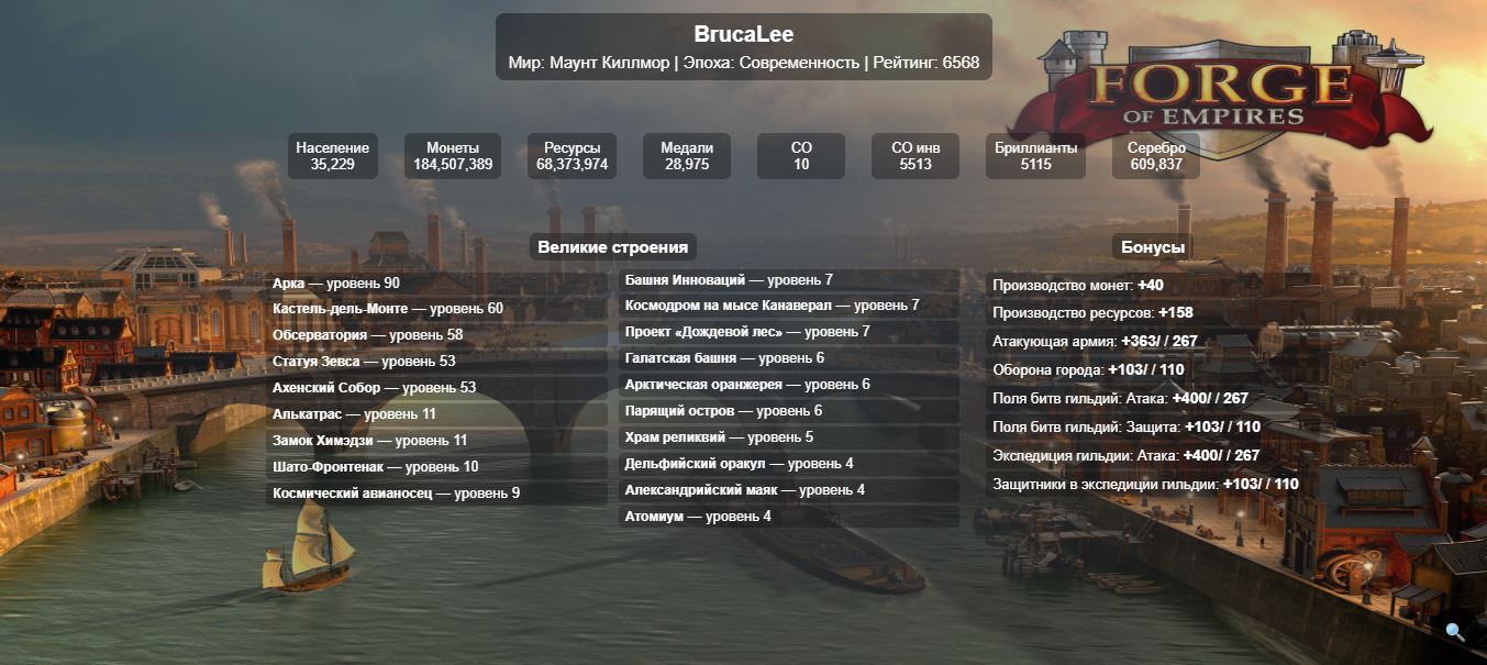 ДАННЫЕ ИДУТ ОТ АККАУНТА FORGE OF EMPIRES