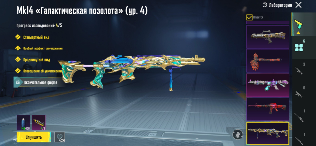 Прокачиваемые оружия: 1-9