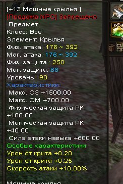 Подробное описание: +13 Мощные Крылья 0.45-10% скорость атаки