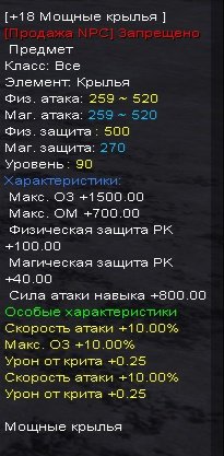 Подробное описание: Мощные крылья+18 20% скорости атаки 0.5 урона от крита 10% оз