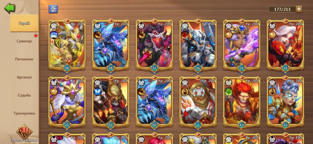 Подробное описание: 77к самоцветов Пернач, Чешуекрыл, Малефик, Динамо, 37-38 прорыв, много других героев, большой потенциал на поднятие силы, постройки все вкачены, на топ героях пойманы все созвездия.