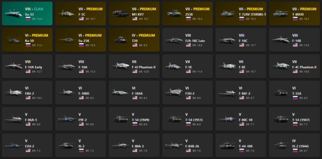 VIII - 6 Su-33, M1 KVT, 2S38, T-72AV (TURMS-T), T-80UD, Ka-50, Su-25K, F/A-18C Late, F-16C, F-14B