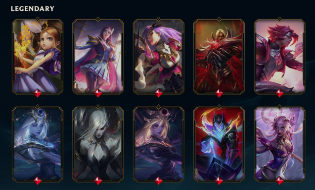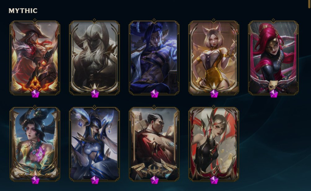 🧥 Skins ➔ 149 ( 9 Prestige, 3 Ultimate, 19 Leg, 22 Chromas (Nightbringer Yasuo for 35 mythic)