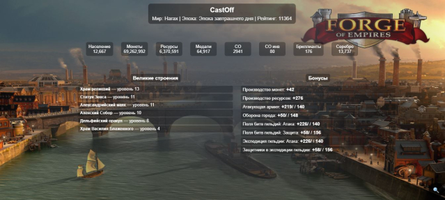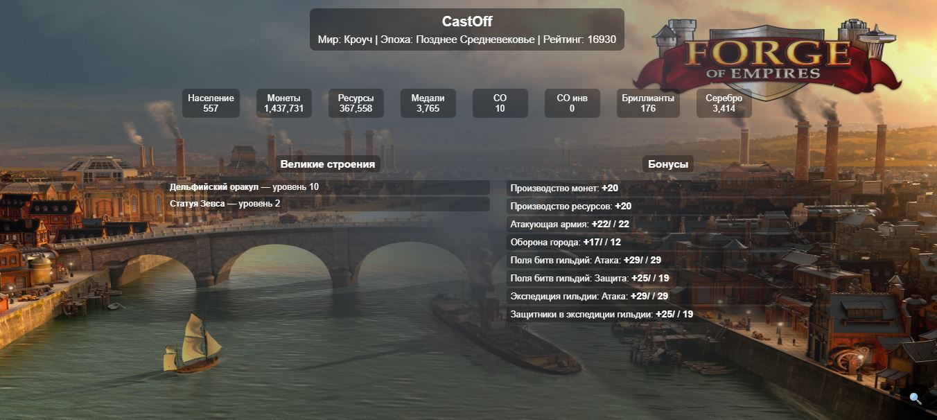 ДАННЫЕ ИДУТ ОТ АККАУНТА FORGE OF EMPIRES