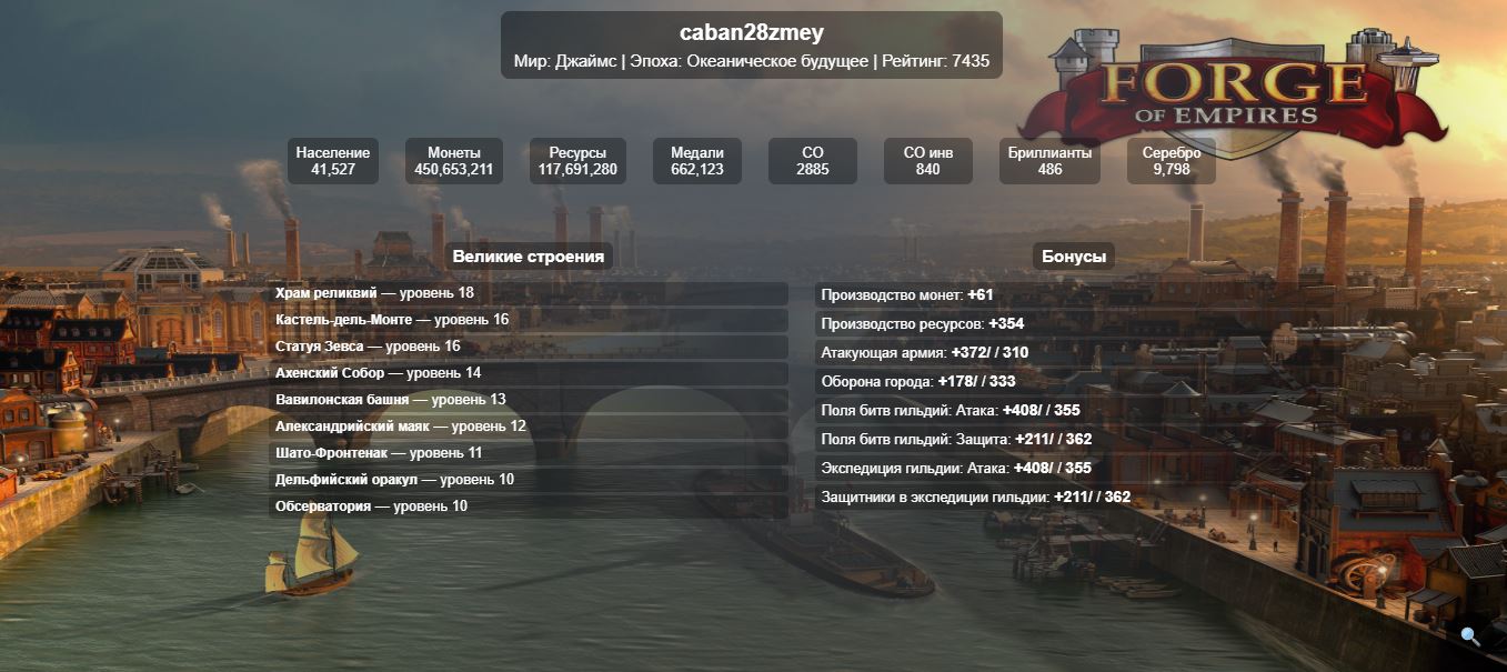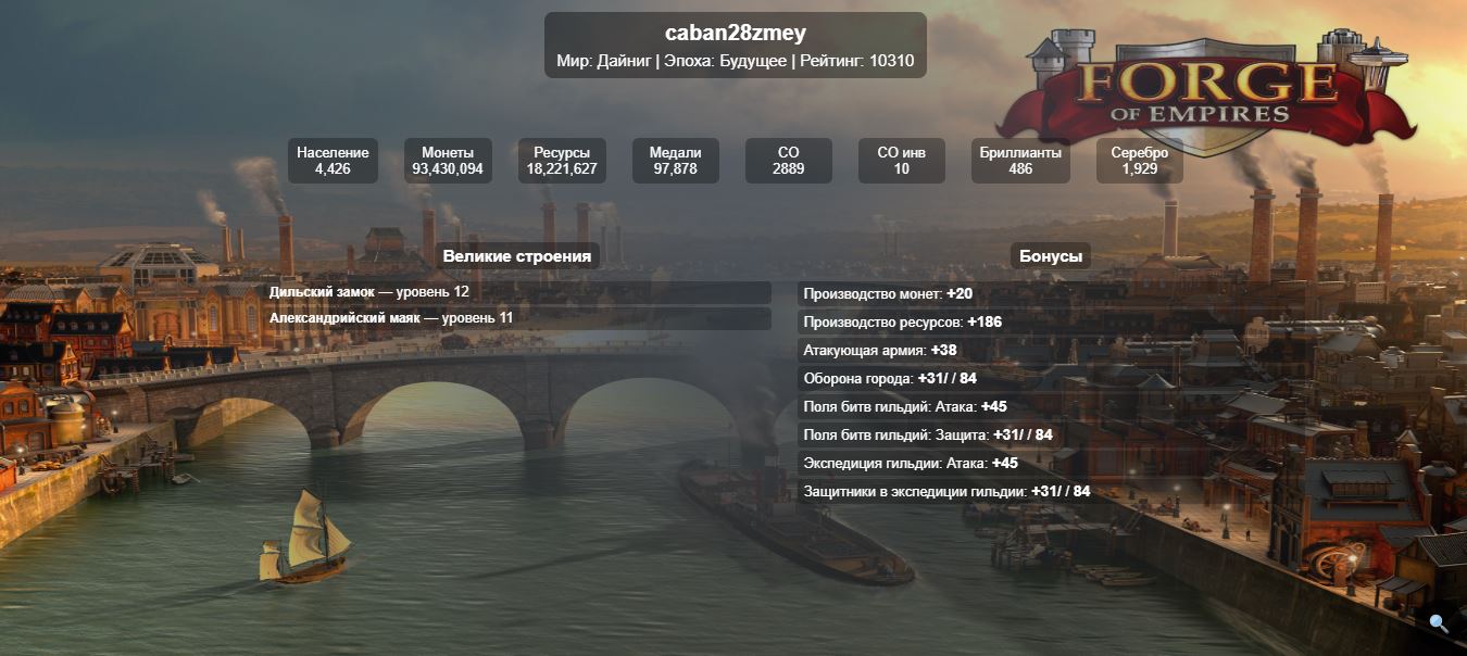 ДАННЫЕ ИДУТ ОТ АККАУНТА FORGE OF EMPIRES
