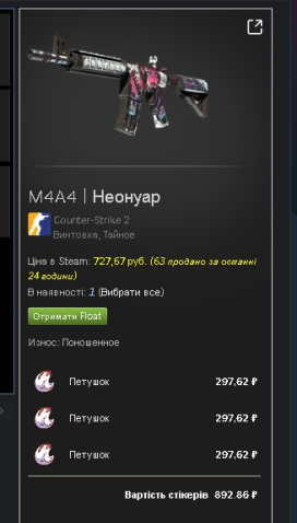 Краткое описание: M4A4 | Неонуар(дорогие наклейки)