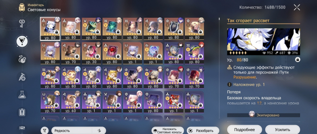 Всего более 39 персонажей, среди них множество 5★ полностью прокачанных до 80 уровня.