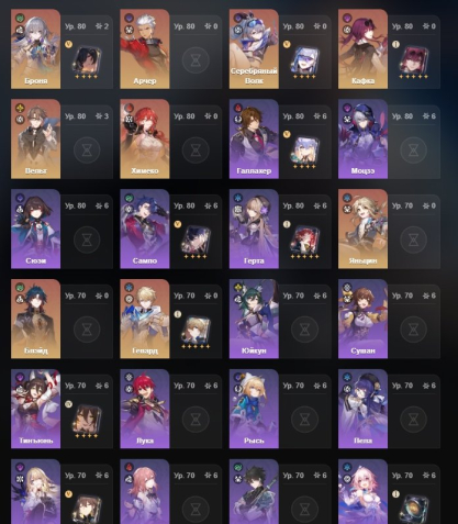 🔥Раппа ⚡️Цзинь Юань ⚡️Клара ⚡️Яньцинь ⚡️Химеко 🔥Искорка 🔥Черный лебедь 🔥Кафка 🔥Фу Сюань ☄️Гепард ☄️Байлу