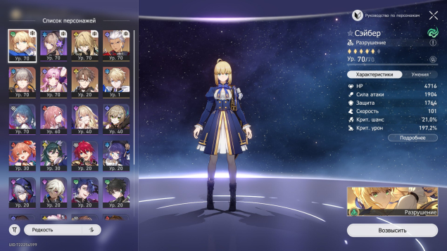 Краткое описание: 🟢 ⭐ Сэйбер Е2С1, Арчер Е0С0, Лоча Е0С0, Фу Сюань Е0С0, Гепард Е0С0, Вельт Е0С0, Клара Е0С0💎✔️ Келус