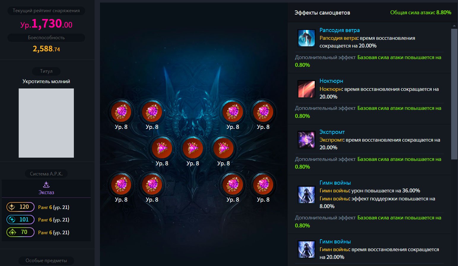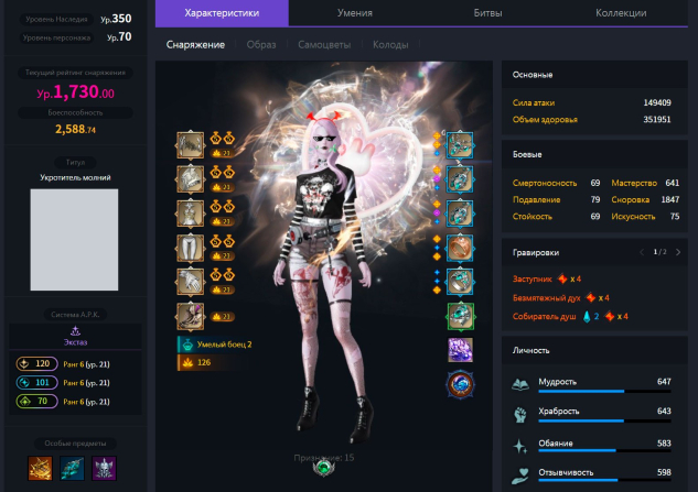 2. Призывательница. 1721гс. 22 пушка. 9-7 фетранит (адреналин-титаноборец). Фулл 7 самоцветы и два самоцвета 8 уровня.