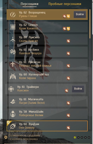 — 10 персов на аккаунте( ЗЕРКАЛО МУДРЕЦ 62 ЛВЛ)