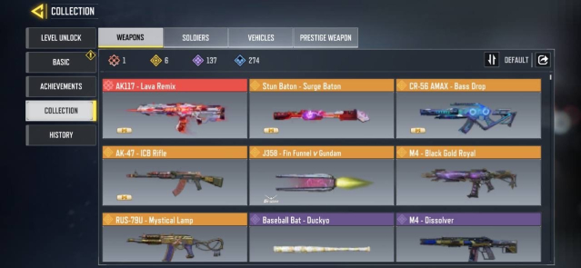 🔫 Skins Gun: 1 Mythic — 6 Legendary — 137 Epic — 274 Rare🔫