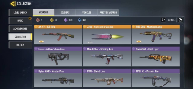 🔫 Skins Gun: 2 Mythic — 10 Legendary — 323 Epic — 679 Rare🔫