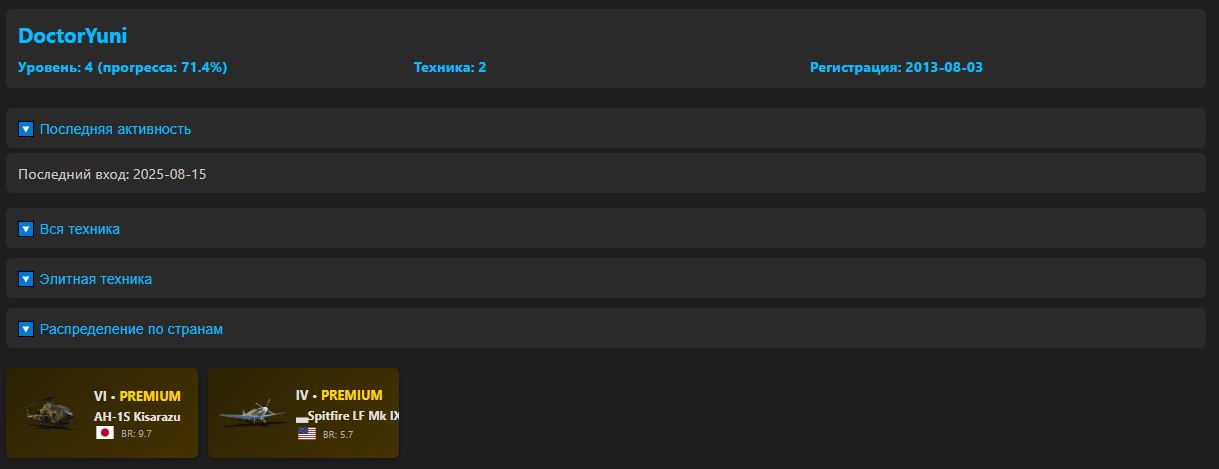 ДАННЫЕ ИДУТ ОТ АККАУНТА WAR THUNDER.COM