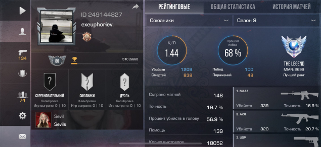 Звание: LegendКраткое описание: аккаунт стендофф, трипл лега