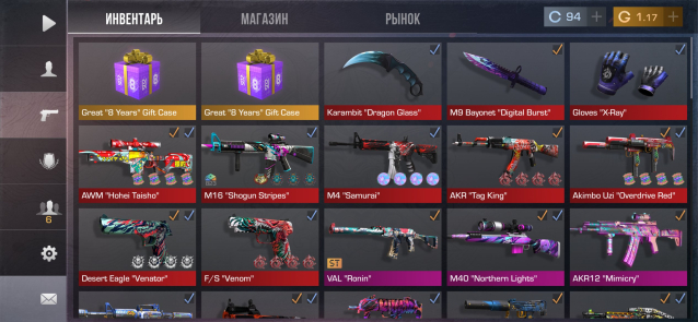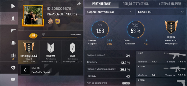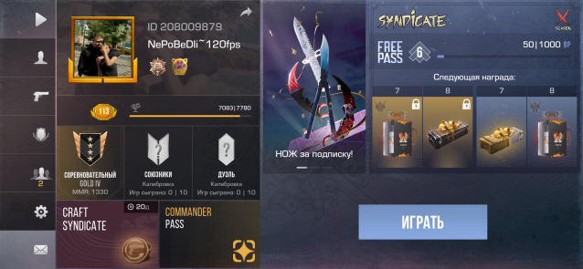 Звание: Gold lVКраткое описание: 2 топовых дорогих ножа(м9 и керамбит дг), свой клан и Тд ЧЕК СКРИНЫ