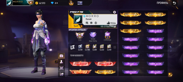 Подробное описание: ПРЕМИУМ АККАУНТ Free Fire | Уровень 69 | Эволюция оружия | РЕДКИЕ НАБОРЫ