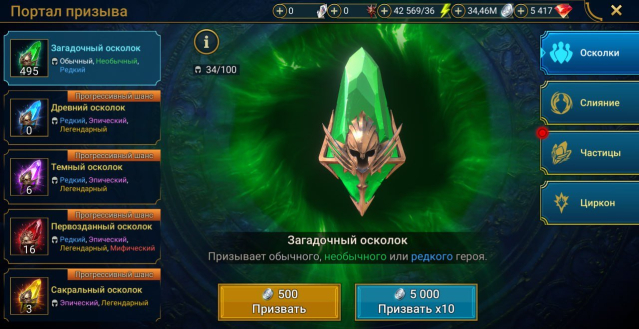 • ОСКОЛКИ: 🟢495 🟣6 🔴16 🟡3