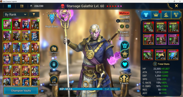Подробное описание: Очень, очень класный аккаунт, который уже давно играется!.. В акк вложено не только время, но и частичка души 💛 Если ты шариш в игре, этот акк просто создан для тебя! Полная смена данных, ничего не привязано. Есть 4 мифика — Галатир — лучший мифик в игре по мнению большенства блогеров, Криксия (ни чуть не хуже) и Леди Микаге и Эмбрис. Собран достойнейший пул чемпионов для пве и пвп игры: Тормин, 2 Теодора, 3 Туганарак, Хефрак, Стралтус +2 и многие другие. 2 Гнута и Сульфурион + 2 Теодора камня на камне не оставят от противников в PvE. Также есть маса хороших героев на PvP контент = идеальный баланс. Все основные герои неплохо одеты, самый быстрый герой — Криксия — 370 скорости. Создан анкил на 4-6 боса. Башни закрываются обычная и сложная. Подземки фармятся все на сложном режиме!!! Фармится гидра 2,3,4 на топ сундук. 3 — 4 Химера на авто (больше 2 миллиардов урона), возможно 5 руками!!! Синтранос закрывается. Играть одно удовольствие! Игра почти пройдена.