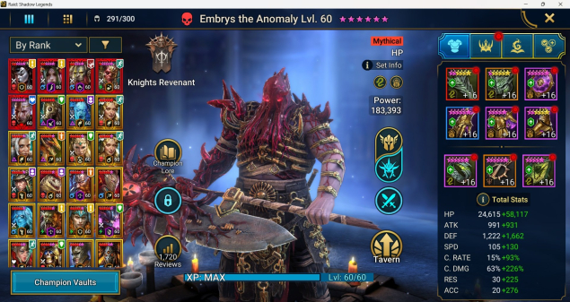 Подробное описание: Нереально крутой аккаунт, которым не стыдно похвастатся перед друзьями! С таким вас примут в любой топ клан 😋 В аккаунт вложено очень много времени, усилий и частичку души ❤️ Есть красивые аватарки и рамки! Шикарнейший пул героев: мифики — Нелл/Микаге/Карнидж/Ембрис/Гизмак, топ пара — Сифи (с душой 6) и 2 Ротос (один из них с душой 5), Фрея, Фина, Тор лучшие контроллеры — 2 Фабиана, Кальвалакс, Каймер. Одни из лучших дамагеров — 2 Харимы, Тор, Чешир, Фолин. 2 Отариона+Мариус (пве вопрос закрыт). Забран Мариус, Раманту, Лидия, Митрала! Все герои очень хорошо и с умом одеты, есть много шмота! Много полезных реликвий. Топ залившик Сифи = 411 скорости (в сете заграда!!!) При желании можно заходить в платину! Все подземки фармлятся на хард режиме + Аль Наме (25) и Двуликий, и Сёгун (25) за пару секунд!!! Все гидры фармлятся, урон на авто = больше 3 миллиардов урона, руками 5.5 миллиардов! Химера последняя и предпоследняя с ключа на авто! Карнидж забран, абсолютно все ротации проходятся!