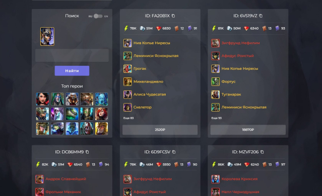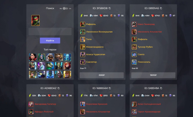 Если нашли тот который понравился, отправьте мне в чат ID выбранного аккаунта. Например — «D3SC771»