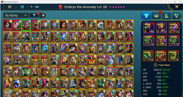 Подробное описание: Очень, очень класный аккаунт, который уже давно играется!.. В акк вложено не только время, но и частичка души 💛 Если ты шариш в игре, этот акк просто создан для тебя! Полная смена данных, ничего не привязано. Есть 4 мифика, а скоро будет и 5 — Галатир — лучший мифик в игре по мнению большенства блогеров, Микаге, Ембрис и Андрок. Собран достойнейший пул чемпионов для пве и пвп игры: Тор, Арманз, Шу-Джень, Трунда, Пифион, Шляпник, Ротос и многие другие. Гнут и Отарион отвечают на PvE. Все основные герои неплохо одеты, топ заливщик — Шу-Джень — 396 скорости. Создан анкил на 4-6 боса. Башни закрываются обычная и сложная. Подземки фармятся все на сложном режиме!!! Фармится гидра 2,3,4 на топ сундук и 4-5 Химера, возможно и 6!!! Синтранос закрывается. Играть одно удовольствие! Игра почти пройдена, Мариус получен.