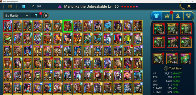 Подробное описание: Отличное предложение, если вы хотите начать игру но не собераетесь заносить кучу $! На аккаунте имеются превосходные герои, его запросто можно сделать основным! Данные сменные, ничего не привязано!!! Присутствуют 140+ отличных легендарок: лучшие суппорты — Мауд, Пифион, Лилиту, Фрея, Маричка. Перекрасные дамагеры — Барон, Ротос (с душой), Трунда (с душой 6*!!! на Трундапак), Тарас, Х-мен, Тор. Топ контроль на арену — Криксия, Атаман, Фабиан! Есть также куча крутих епиков. Топ герой по скорости — Криксия — 387 скорости. Фармится хард дракон, паук, голем, лава, Двуликий. Команды настроены и подписаны! Фармится 2/3/4 гидра и 2-3 химера на топ сундуки. Играть будет очень интересно! Ембрис 44/100! Леди Микаге осталось только слиять!