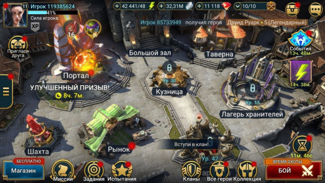 • Доп. ресурсы: ⚡️42к энергии 🪙32м серебра 💎11118 рубинов