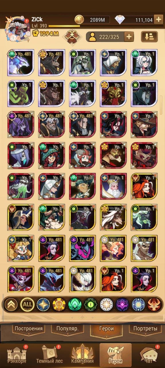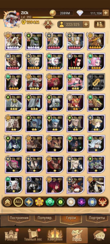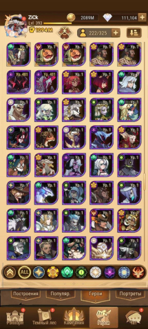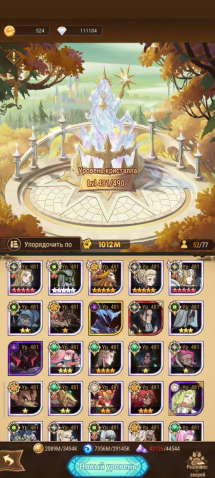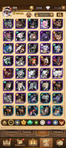 Подробное описание: 393 уровень, 50 возвышенных героев, 111000 алмазов, 481 уровень кристалла, мощность 1094M