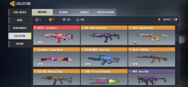🔫 Skins Gun: 1 Mythic — 7 Legendary — 190 Epic — 469 Rare🔫