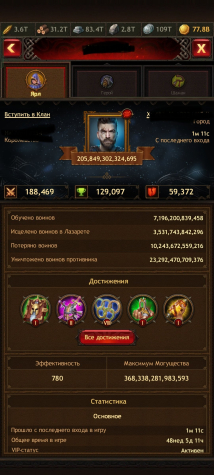 Подробное описание: Хорошая прокачка, в валькирии все виды прокачаны(кроме т9, их только ввели в игру), вип 69, играю в основном пехами/шпионами, в аккаунт вложено не мало денег, сил и времени. За более подробной информацией пишите в личку.