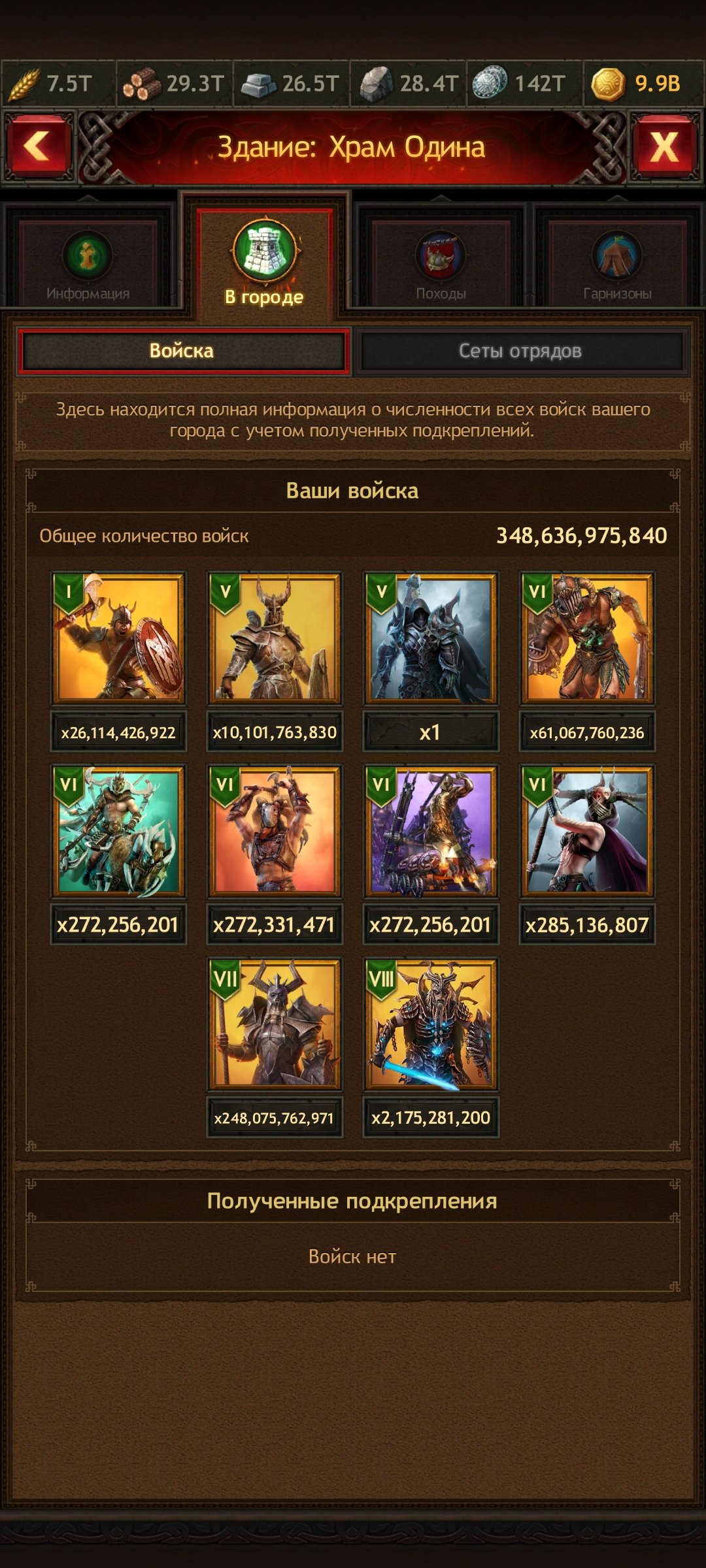 Ресурсы: еда 425+ т. камень, дерево, металл от 500т, серы от 900т.