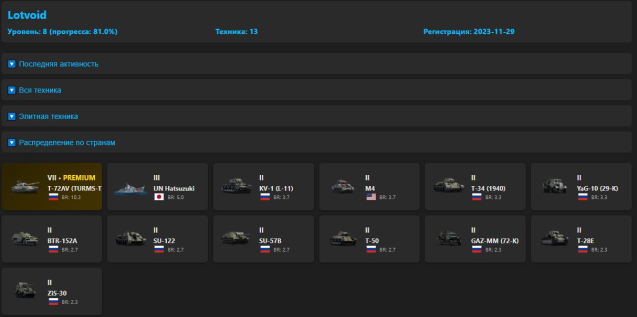 ДАННЫЕ ИДУТ ОТ АККАУНТА WAR THUNDER.COM