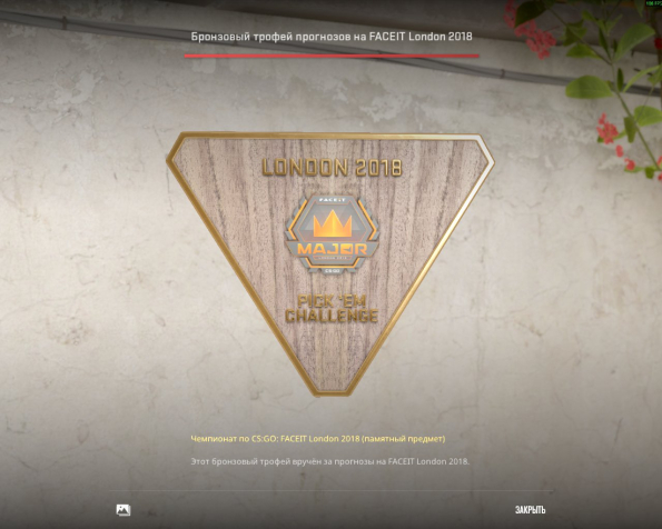 Бронзовый трофей прогнозов на FACEIT London 2018