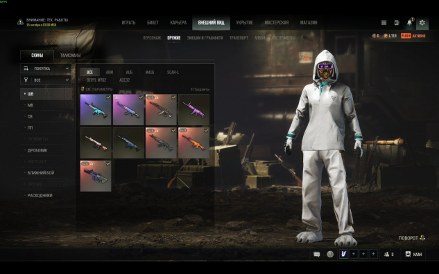 — 6 ПРОГРЕССИВНЫХ пушек, Aug Неоновые сны 5 лвл + хрома, Beryl Лазурный дракон 6 лвл(килл чат), ACE32 Касание демона 2 лвл, СКС Хронопушка 2 лвл, МК12 Киберугроза 3 лвл, М416 Сладость или гадость 3 лвл, сковорода тыквенный разрушитель.