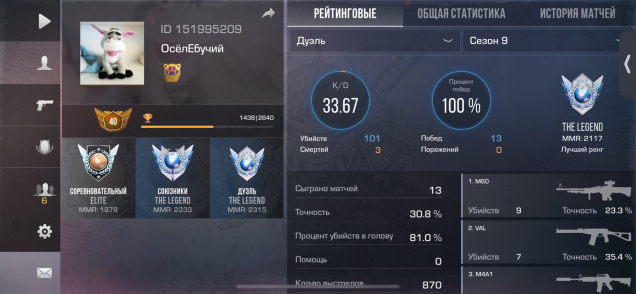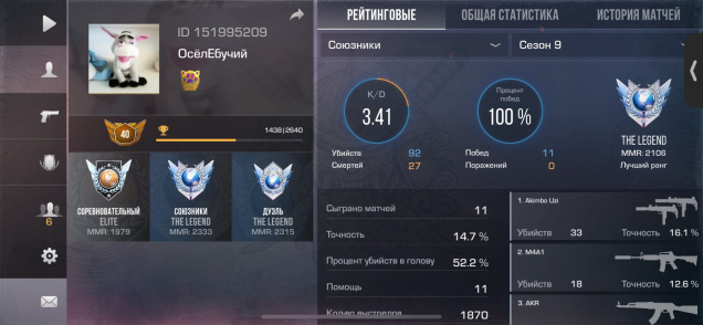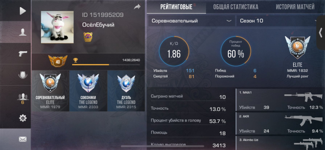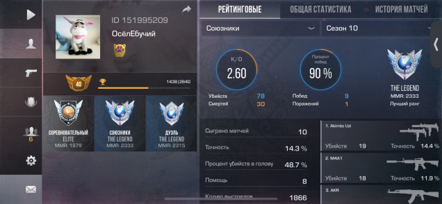 Звание: LegendКраткое описание: id:151995209 трипл лега в 9, в 10 дабл 2300 + элита
