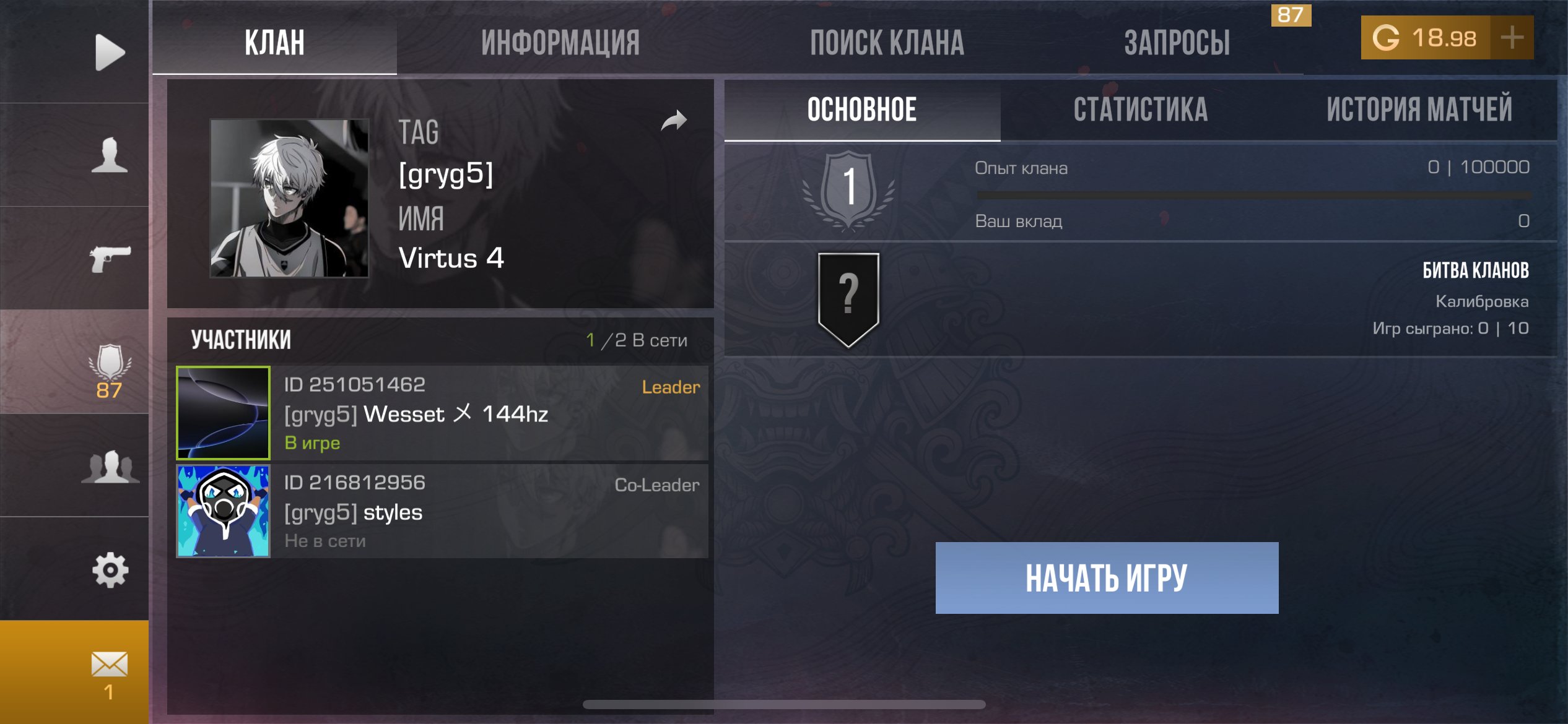 Звание: КалибровкаКраткое описание: акаунт с кланом✅