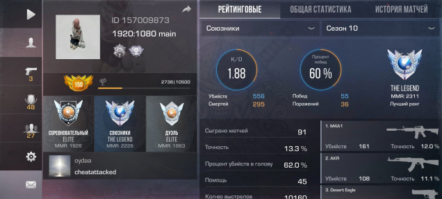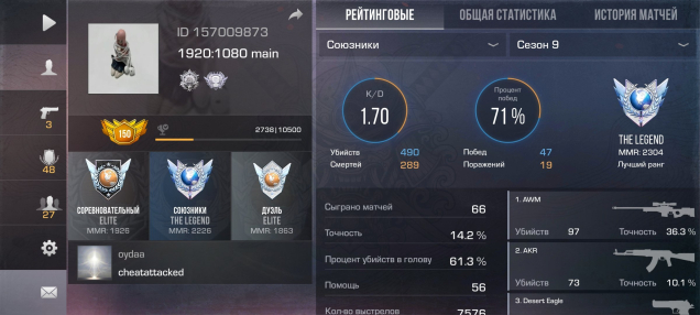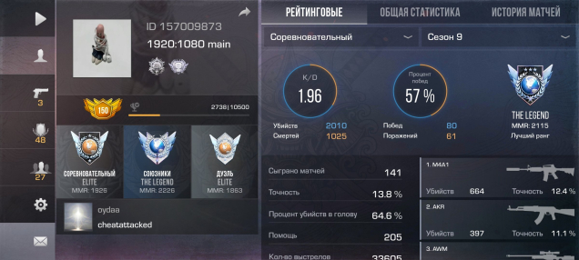 Звание: LegendКраткое описание: id 157009873, в 9 сезоне дабл легенда, в 8 сезоне мастер