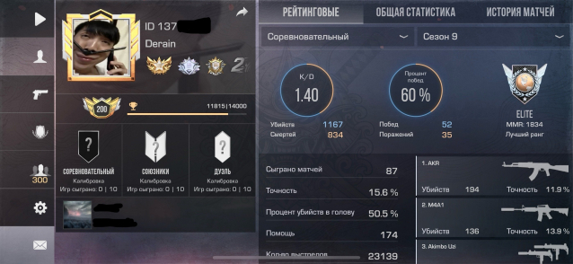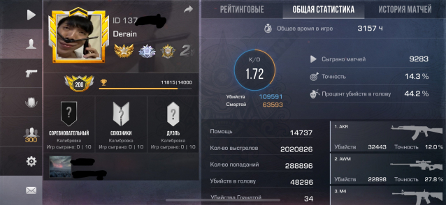 Звание: EliteКраткое описание: ОЛД АККАУНТ 2017г 🎮📅 С ОЛД МЕДАЛЯМИ 🏆🥇 И КРУТОЙ СТАТОЙ 💪📊 «ПРИВЯЗКА ГУГЛ» 🔗🌐 АЙДИ: 137**** 🔒