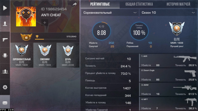 ⏰ Общая статистика — около 10 часов игрового времени, стабильные результаты.