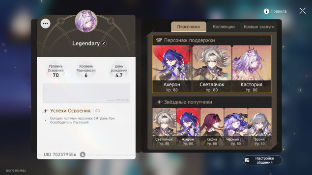 Продаю свой личный акк из-за потери мотивации для игры и отсутствия времени. Аккаунт еще не выжат, много мест где можно вытянуть звездный нефрит. Сюжет брошен где-то в середине на Апомфеусе. Персонажи собраны достаточно чтоб закрывать сюжет и задания мира, с виртуальной вселенной никаких проблем так же не возникает.
