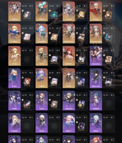Краткое описание: 6000+неф+4б АнаксаE1, КеридраE1, ЦиферE0S1, БроняE1, СейберE0S1, Лоча+ еще 6 + сюж до 2.0 + 2 Геншина